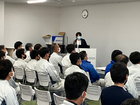 T先生のお話は非常に分かりやすく、特にストレスの原因(ストレッサー)とそれに対する対処法についての部分は、多くの社員にとって大変役立つ内容と感じました。講演の最後には、熱心に質問をする社員もいて、他人を思いやること、メンタル不調を抱えた人をサポートするための新たな視点と知識を得ることができました。
